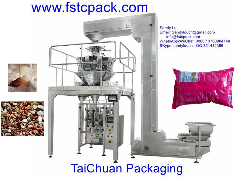 Automatic Vertical high speed packing machine,packaging machine:Fully-automatically complete all the process from Feeding, Weighting ,Filling, Bag–making , Sealing, Cutting ,Packing, Date-printing to finished products outputting.